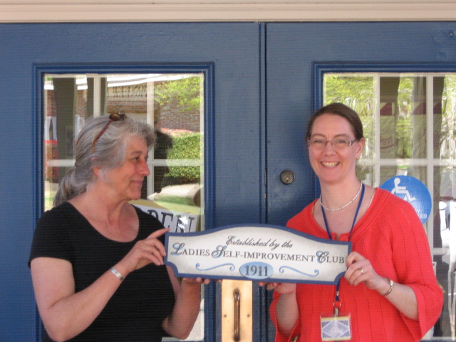 Plaque honors library founders Ladies Self-Improvement Club 1911 Jane McQueen, sign painter and Librarian Sherri